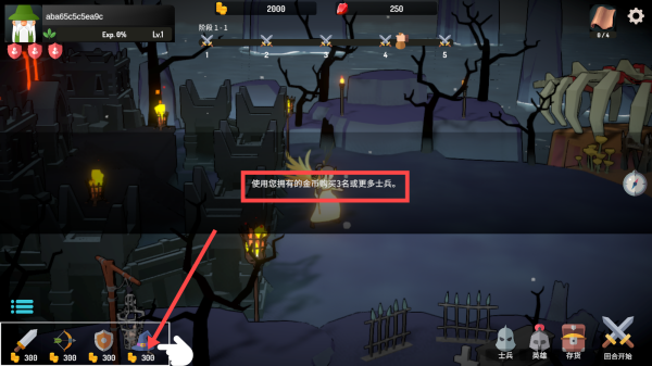 1、使用拥有的金币训练3名或更多士兵来增强战力。