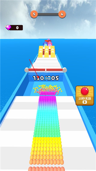 2、持续前进,收集沿途的小球,使方块队伍不断壮大。