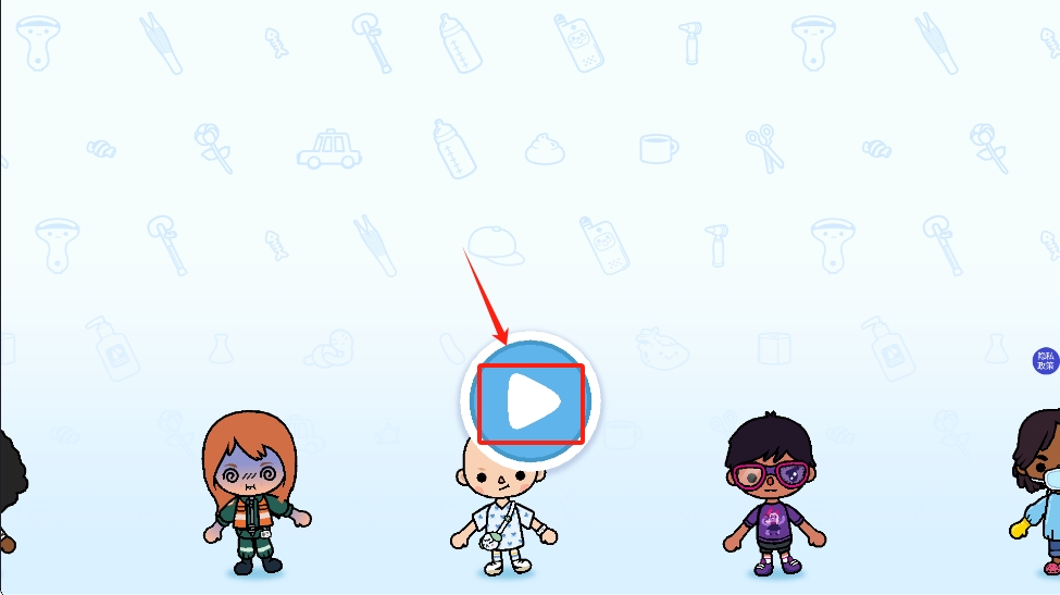 1、选择角色后,点击中间的播放按钮开始游戏,进入下一步。
