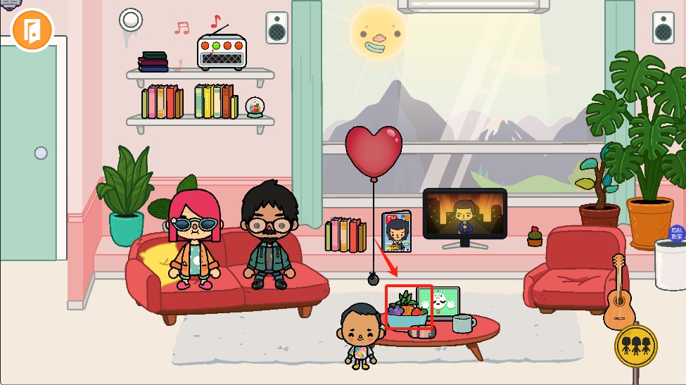 3、在医院场景中,点击桌子下的水果,了解游戏内互动操作。