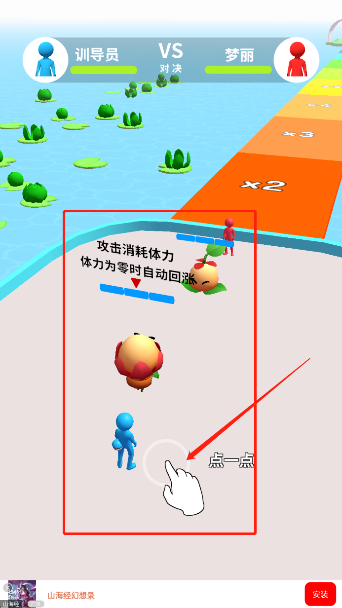 3、在对战中,点击屏幕进行攻击,攻击会消耗体力。当体力耗尽时,角色会自动恢复体力,继续战斗。