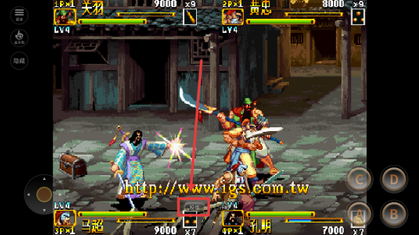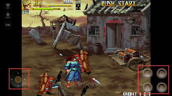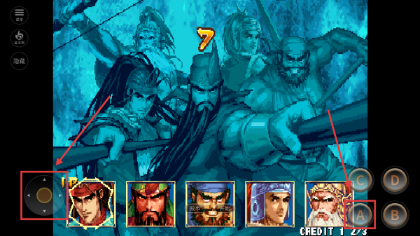 3、在战斗界面,摇杆控制角色行走,点击【C】使用道具,点击【A】、【D】角色出招,点击【B】跳跃。