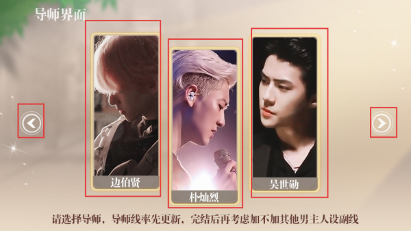 3、根据个人喜好选择主角导师,点击前后按键可以查看更多角色。