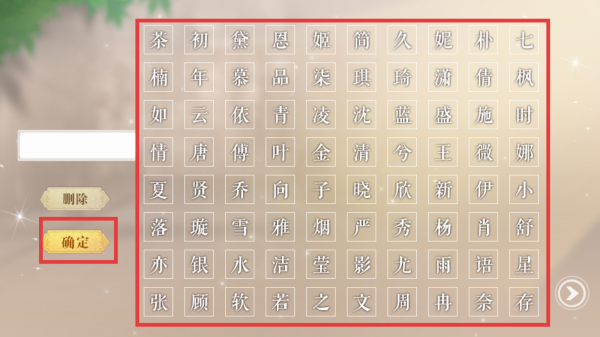 2、点击框选文字为主角取名,完成后点击【确定】。