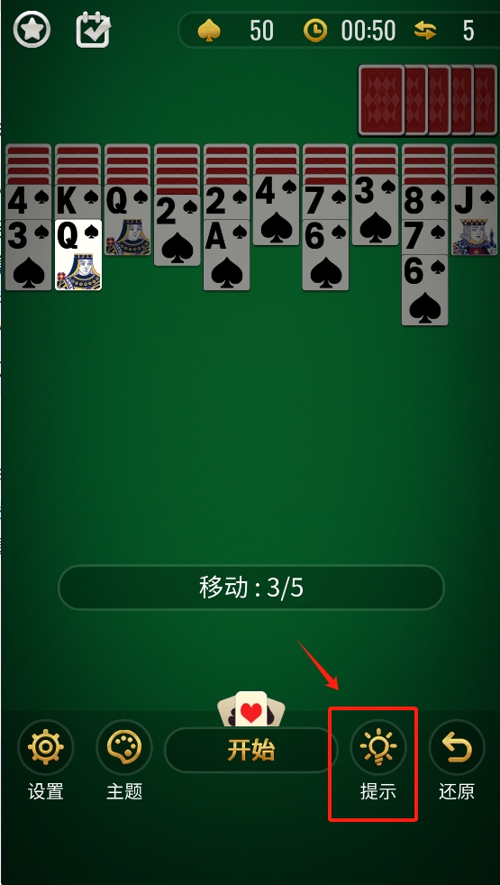 4、胜负判定标准:当所有牌按花色从K到A完整排列并收回时获胜。则游戏结束,系统会提示本局最佳解法。