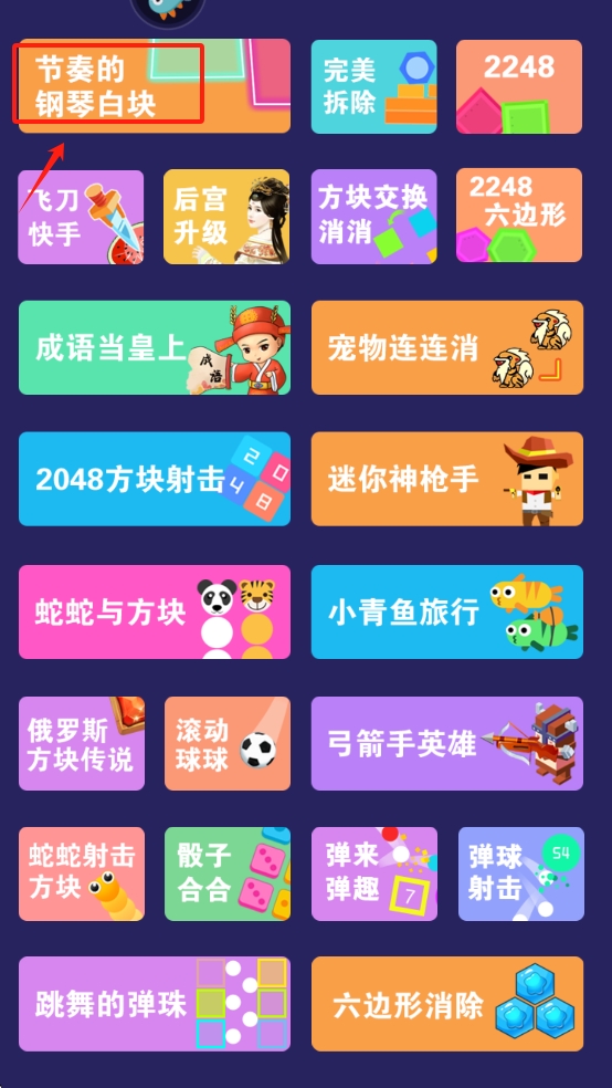 1、点此图标进入游戏,选中“节奏的钢琴白块”点击开启游戏之旅。