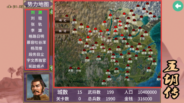 三国群英传2烽烟五胡传是一款基于三国群英传2修改的历史策略游戏,以五胡十六国时期为背景,还原匈奴崛起、两赵对峙、前秦统一等真实历史事件,玩家可带领兵马参与乱世争霸,改写历史进程。