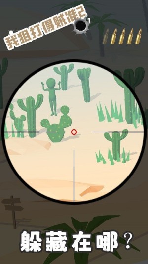 1、创意狙击玩法:与传统射击游戏不同,目标可能藏在奇葩位置,比如躲在马桶后或伪装成雕像,考验玩家的观察力。