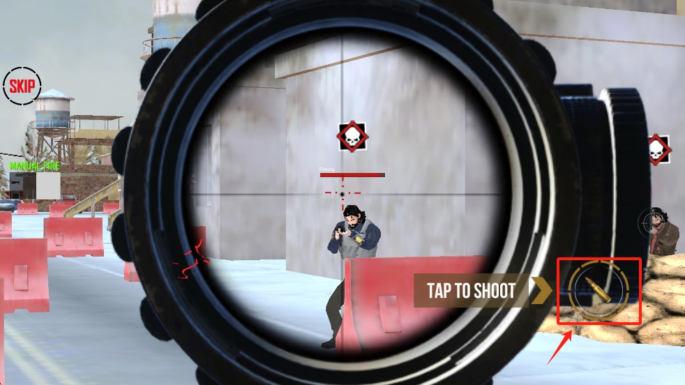 3、瞄准后,点击射击按钮,精准击杀敌人,完成任务目标。