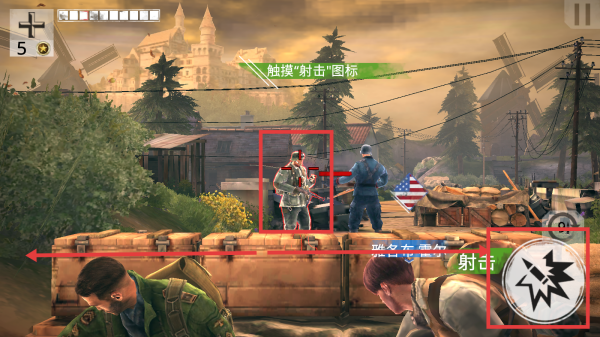 3、左右滑动屏幕控制准星,瞄准目标后,点击射击按键。