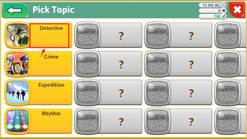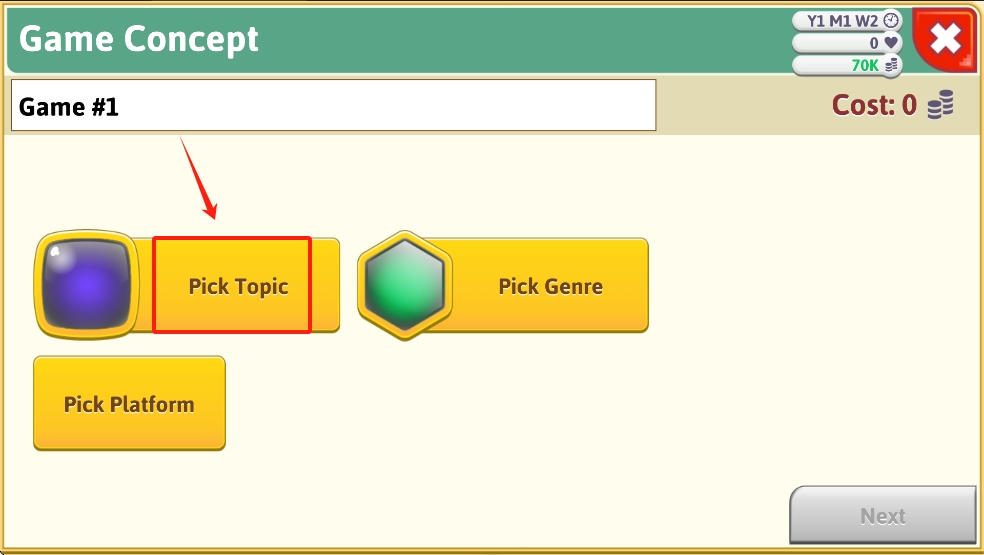 3、点击“Pick Topic”选择游戏主题,选择一个主题来定义你的游戏内容和方向。