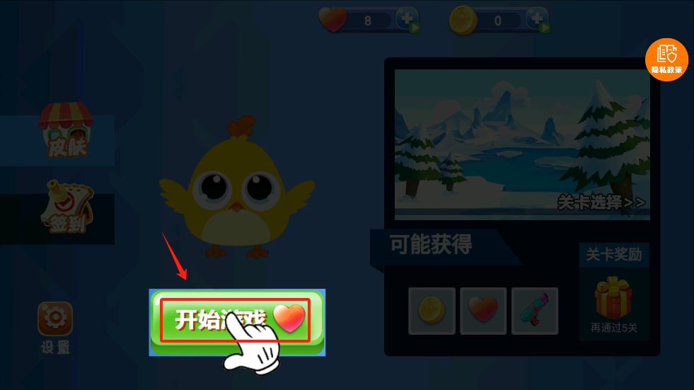 1、目标明确行动快:观察关卡布局,明确小鸟位置和终点方向。核心操作在于精准使用专属武器,在恰当时机小鸟解冻击碎冰块。