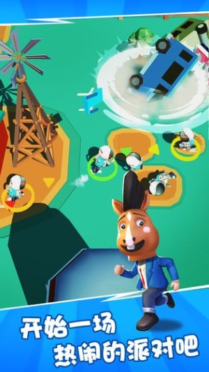2、魔性物理引擎:物体碰撞呈现夸张特效,被砸中的角色会旋转飞出,搭配滑稽表情包式动画。