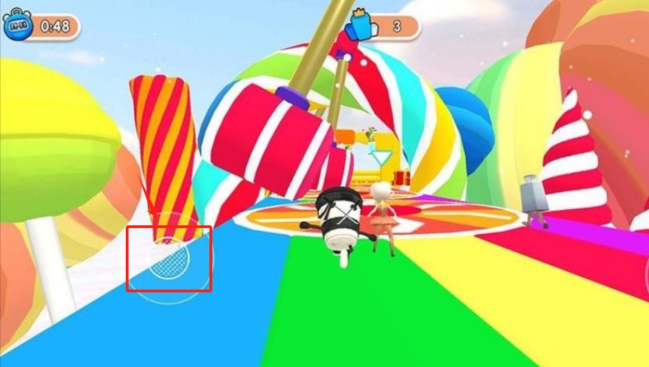4、使用屏幕上的虚拟摇杆控制角色移动,确保角色安全前进。