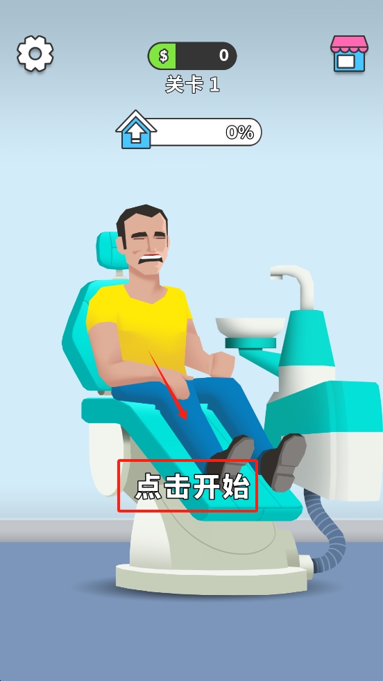1、在游戏主界面,点击下方 “点击开始” 按钮,进入牙医清洁游戏。