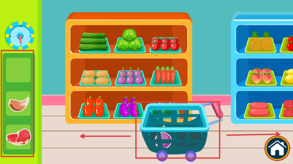 1、超市购物模拟:小朋友在虚拟超市中寻找指定食材,学习分类挑选,加深对食物名称与外观的记忆,锻炼观察力与思维能力。