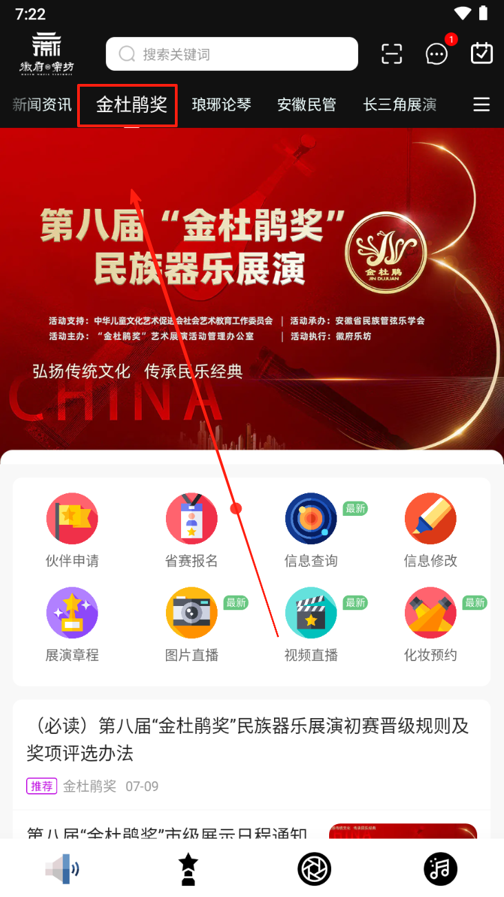 4、赛事活动平台提供各类民乐比赛报名通道和线上选拔功能,为优秀演奏者创造展示才华的机会。