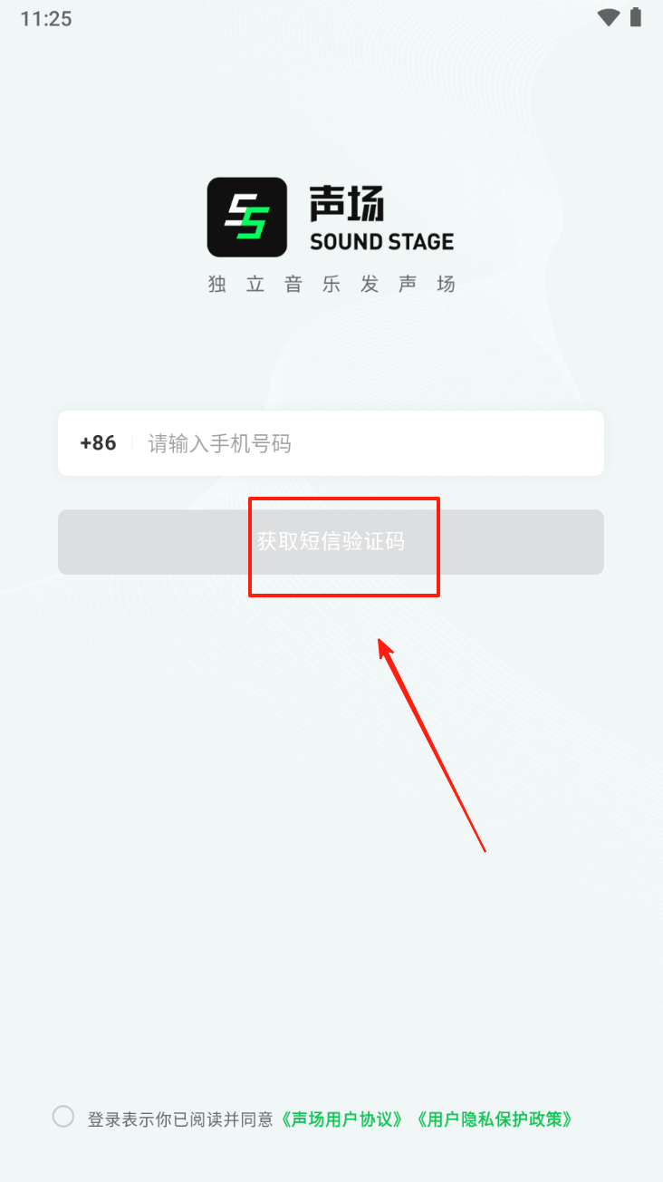 2、在登录页面,输入手机号并点击“获取短信验证码”按钮,获取并输入验证码。