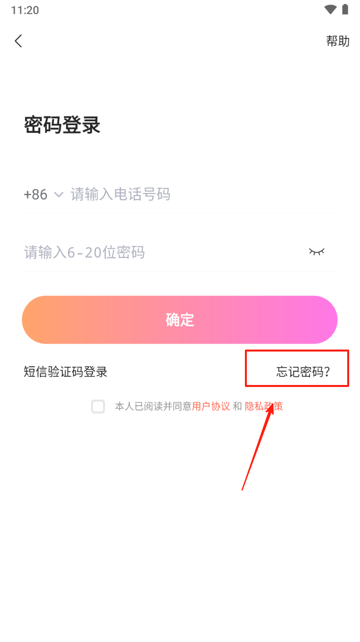 4、如果忘记密码,点击“忘记密码?”按钮,通过手机号找回密码。