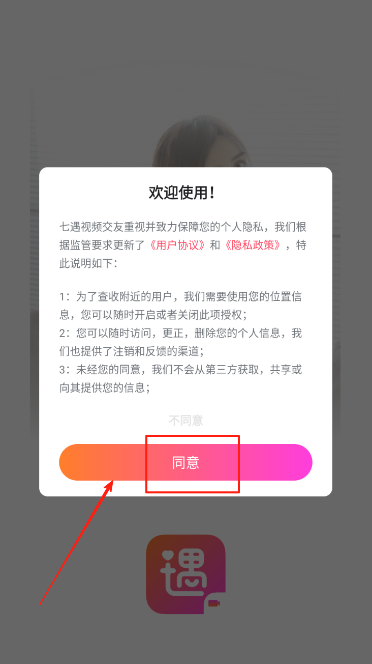 1、在欢迎页面,点击“同意”按钮,表示您已阅读并同意用户协议和隐私政策。