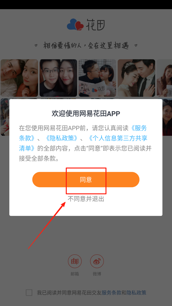 1、在欢迎页面,点击“同意”按钮,表示您已阅读并接受服务条款和隐私政策。