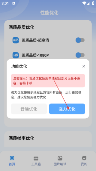2、操作便捷高效:提供一键强力优化模式,简化复杂设置流程,新手用户也能快速完成画质与帧率的极致调整。