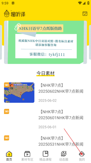 2、进入首页点击我的。
