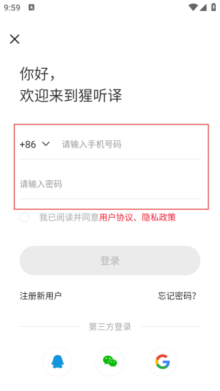 3、进入登录界面输入手机号和密码即可登录。