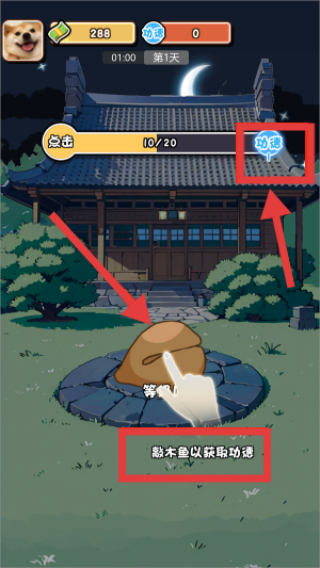 2、根据下方任务提示,不断敲击木鱼获取【功德】。