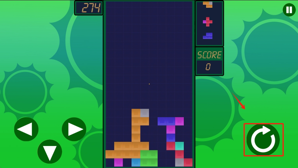 2、游戏过程中,点击左下角的方向键,控制方块左右移动和下落,进行消除。