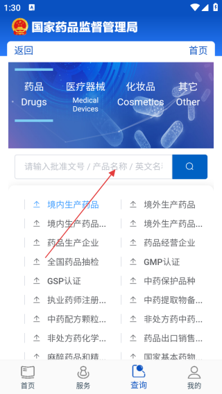 3、进入查询界面在搜索框搜索药品即可。