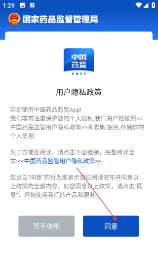 1、打开应用查看协议点击同意。