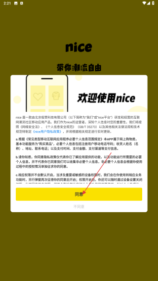 1、打开应用,在界面阅读内容后,点击【同意】按钮。