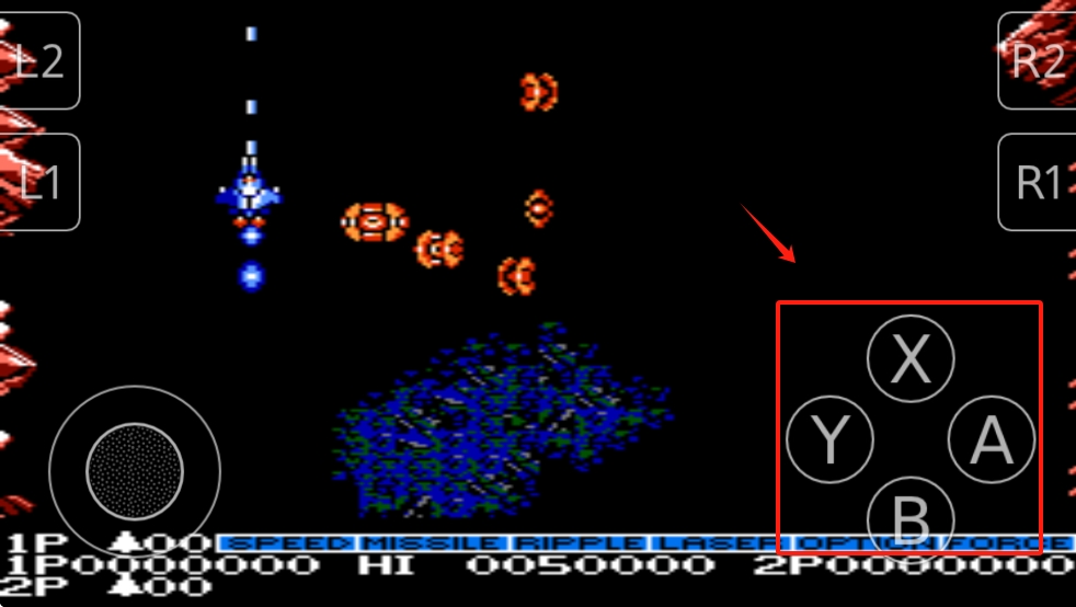 3、游戏中,右下角有“X”“Y”“A”“B”按钮,分别对应射击、特殊武器、加速操作。