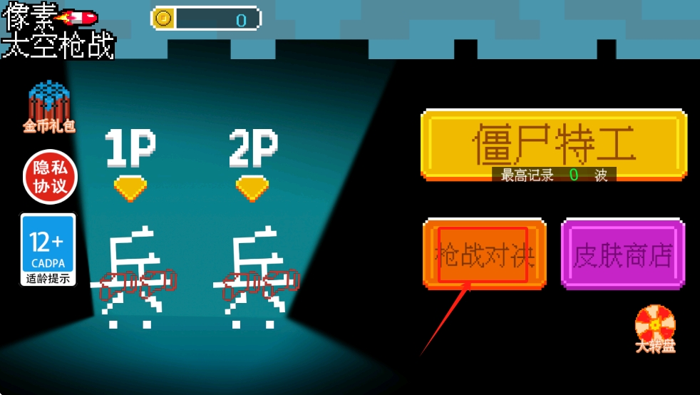 1、进入游戏主界面,点击“枪战对决”按钮,选择游戏模式。