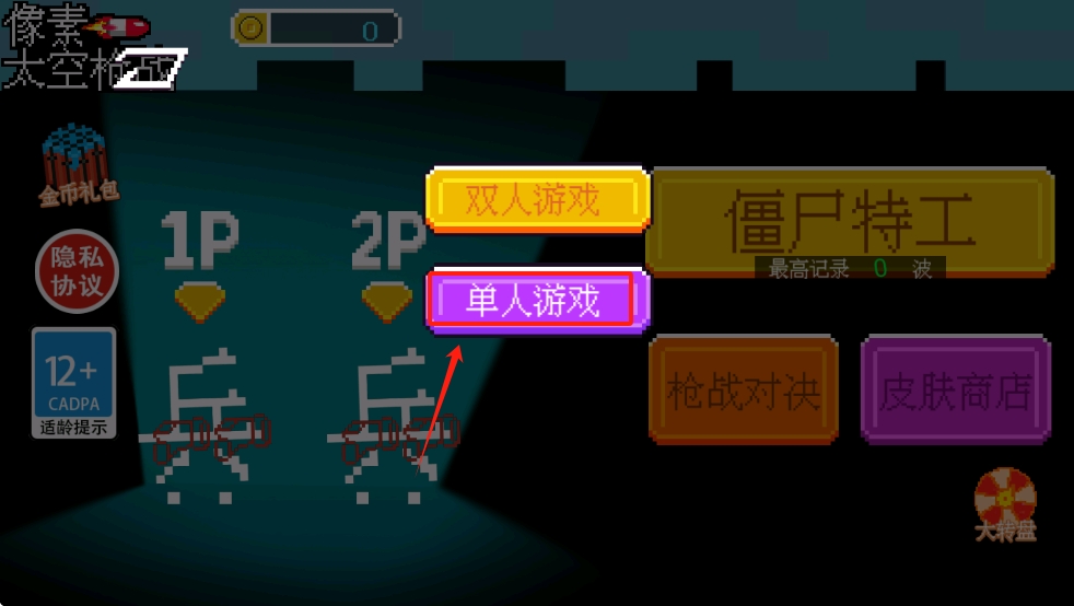 2、在游戏模式选择界面,点击“单人游戏”按钮,进入单人游戏模式。