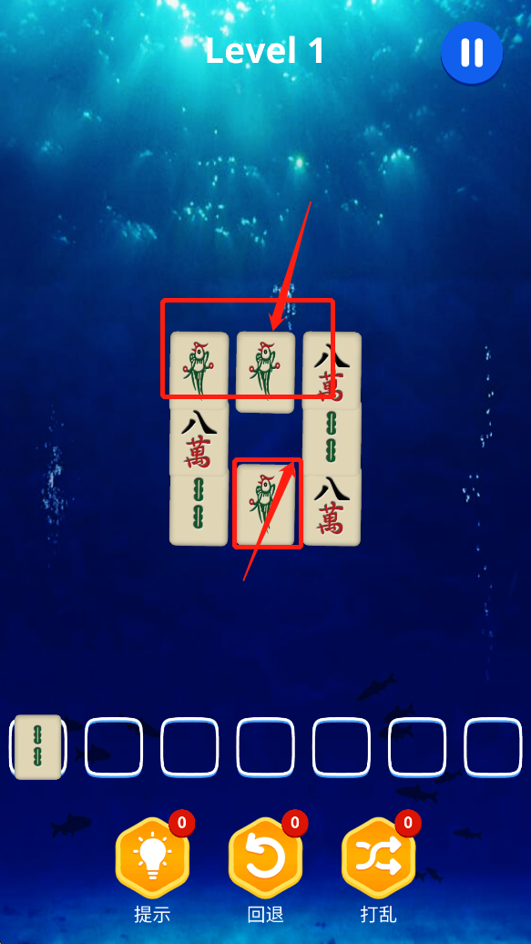 2、找出相同麻将:在关卡中,玩家需要找出三个牌面相同的麻将,将它们放入方槽内进行消除。