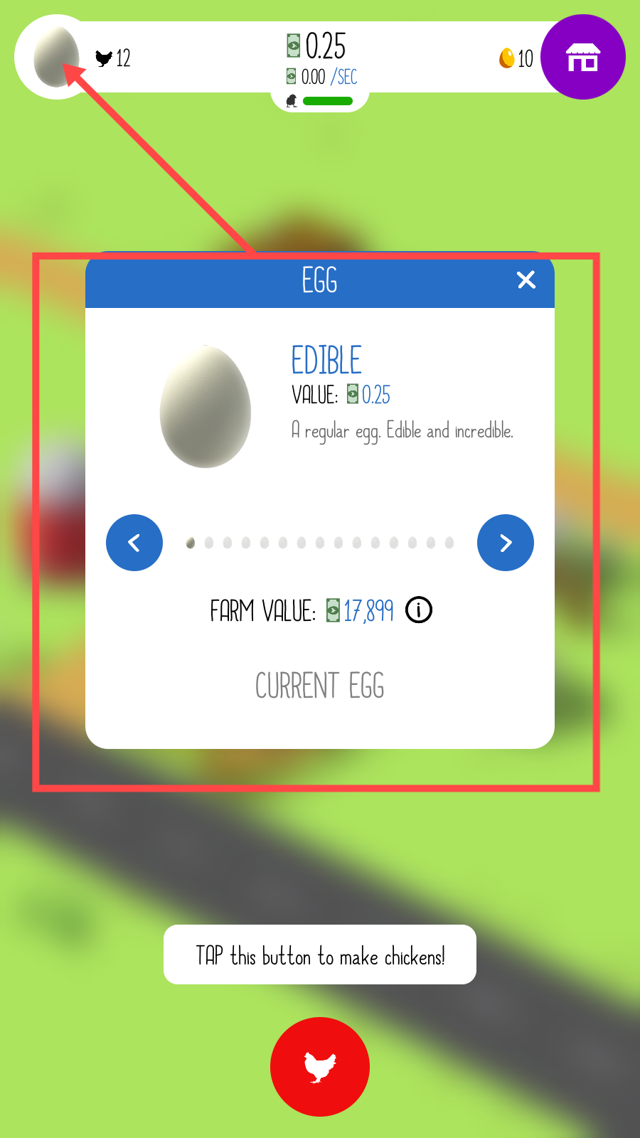 3、点击左上角鸡蛋图标查看【EGG】信息,了解鸡蛋的价值等内容,以便更好管理资源。