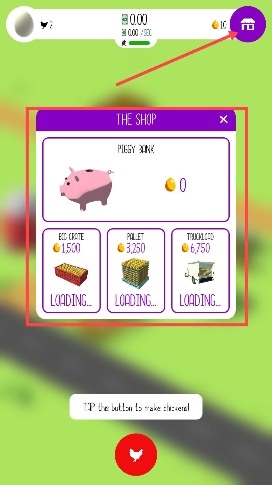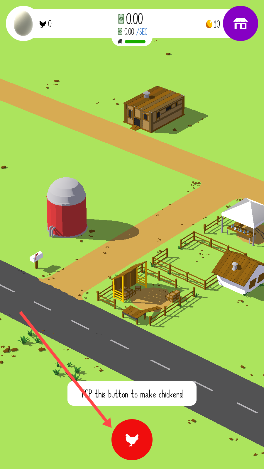 1、进入游戏后点击底部带有鸡图标的【TAPthisbuttontomakechickens!】按钮来生成小鸡,积累初始资源。