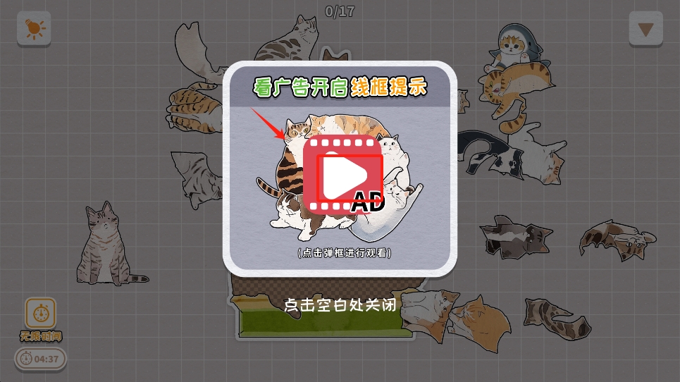 3、若遇到困难,可查看广告开启线框提示,借助提示继续完成拼图。
