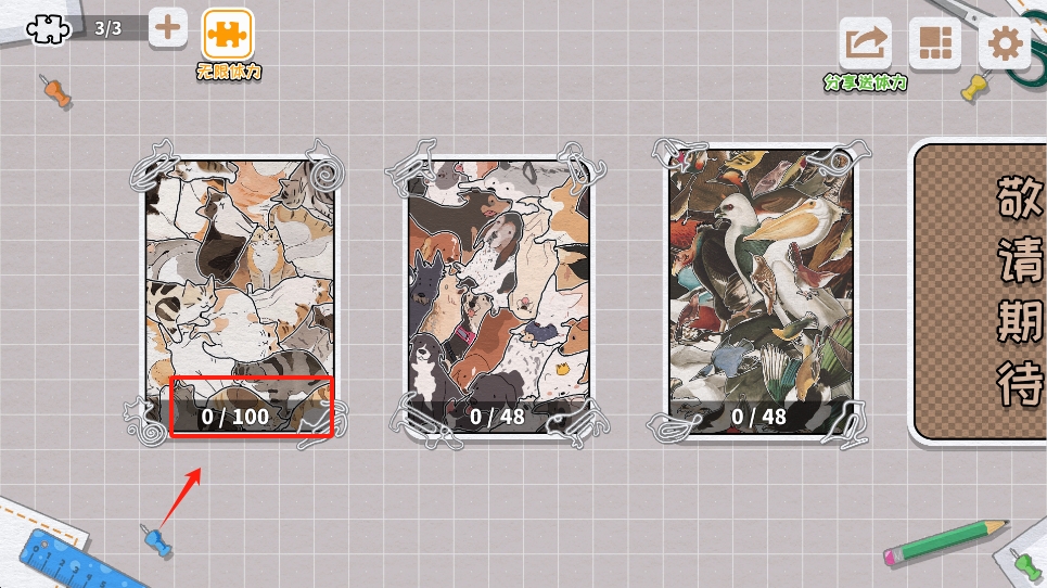 1、进入游戏首页,查看当前拼图进度情况,点击相应拼图进入游戏。