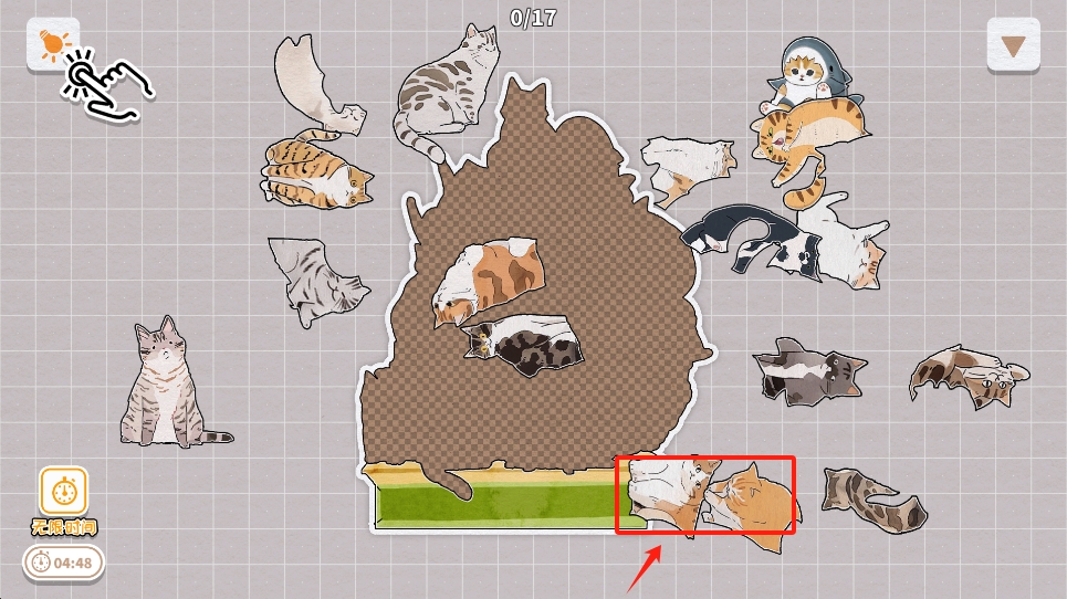 1、轮廓拼接模式:将散落的猫咪碎片拖拽到正确位置,通过边缘轮廓匹配完成整体图案,适合新手入门。