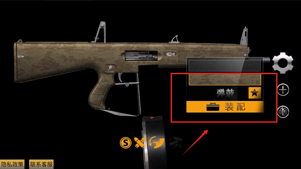 3、点击武器上的弹鼓位置,进行弹药更换,确保武器处于可使用状态。