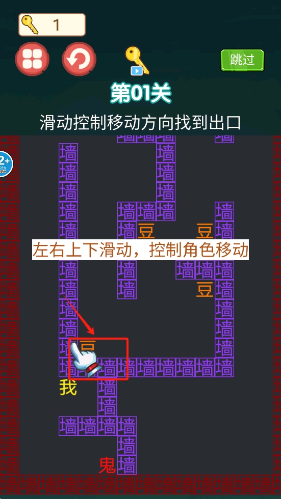 2、使用滑动手势控制角色移动,避开障碍,寻找并走向迷宫出口。
