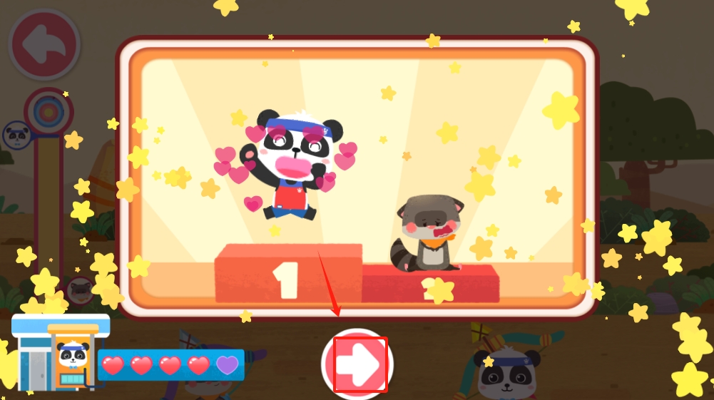 1、角色陪伴暖心互动:小熊猫奇奇会全程陪伴参赛,根据比赛结果做出鼓掌、加油等反应,宛如真实小伙伴。