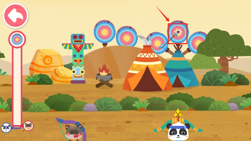 2、需要瞄准并射击,控制角色向目标靶射击箭矢。