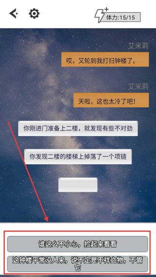 2、随着剧情发展,会让玩家自行选择选项,做出的每个选择都会改变剧情发展,需要慎重。