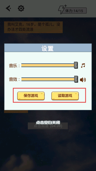 3、点击【设置】,可以保存游戏进度和读取游戏进度,让玩家获得更便捷的游戏体验。