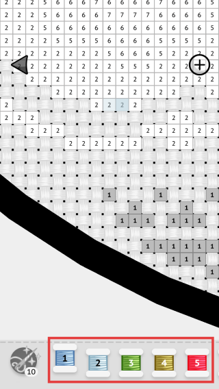 2、点击下方绣线,按照绣线上的数字,点击模板中与之对应的数字。