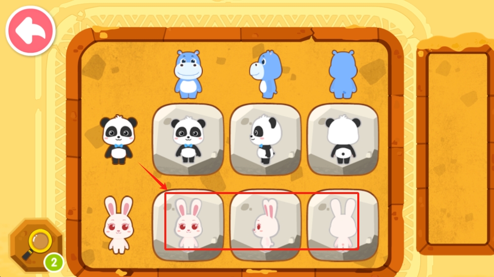 3、在拼图界面,点击下方缺失位置中的兔子图案,完成拼图挑战。